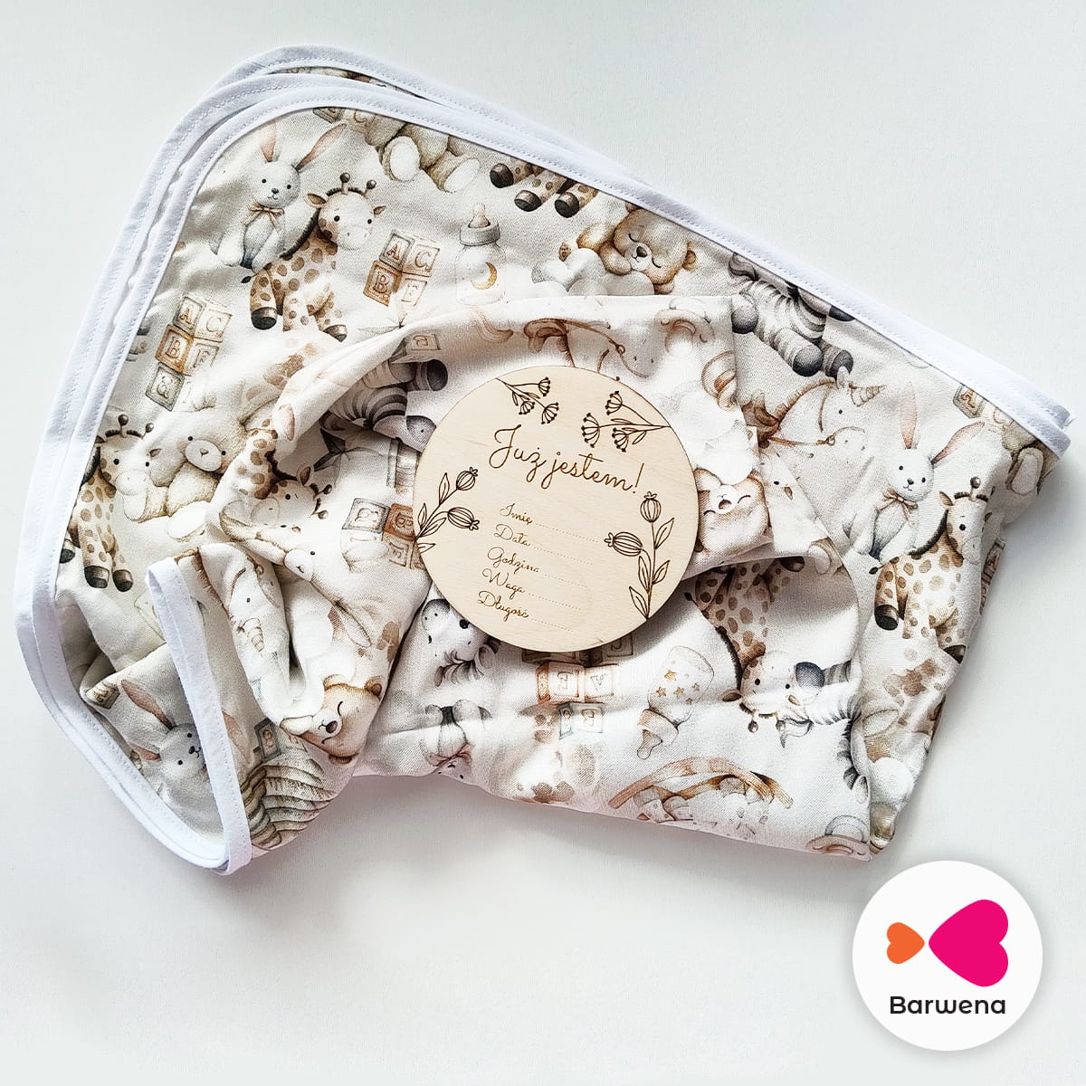 Kocyk bambusowy dla niemowlaka, otulacz o wymiarach 80 x 100 cm + gratis plakietka/metryczka do uzupełnienia i fotografii noworodkowej.