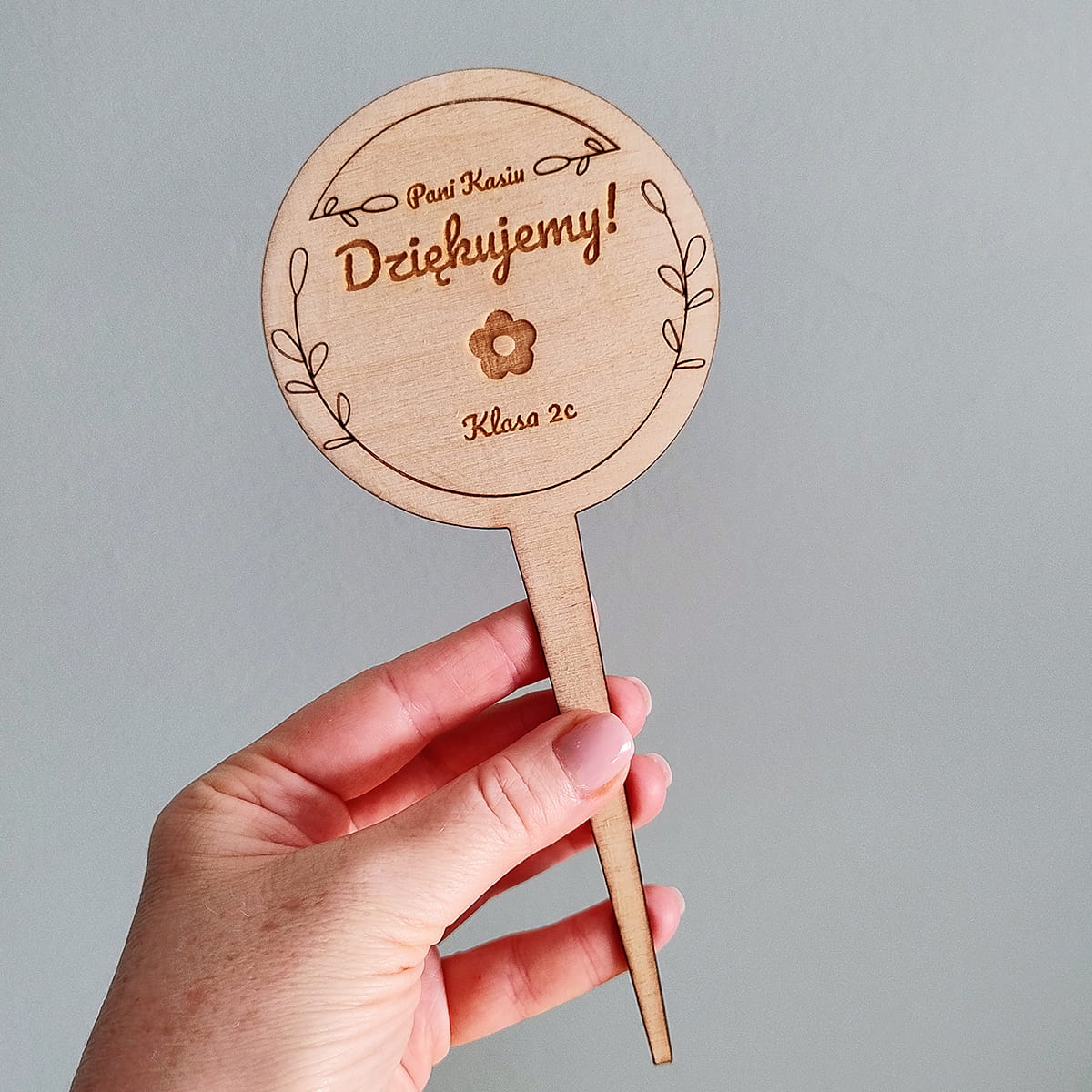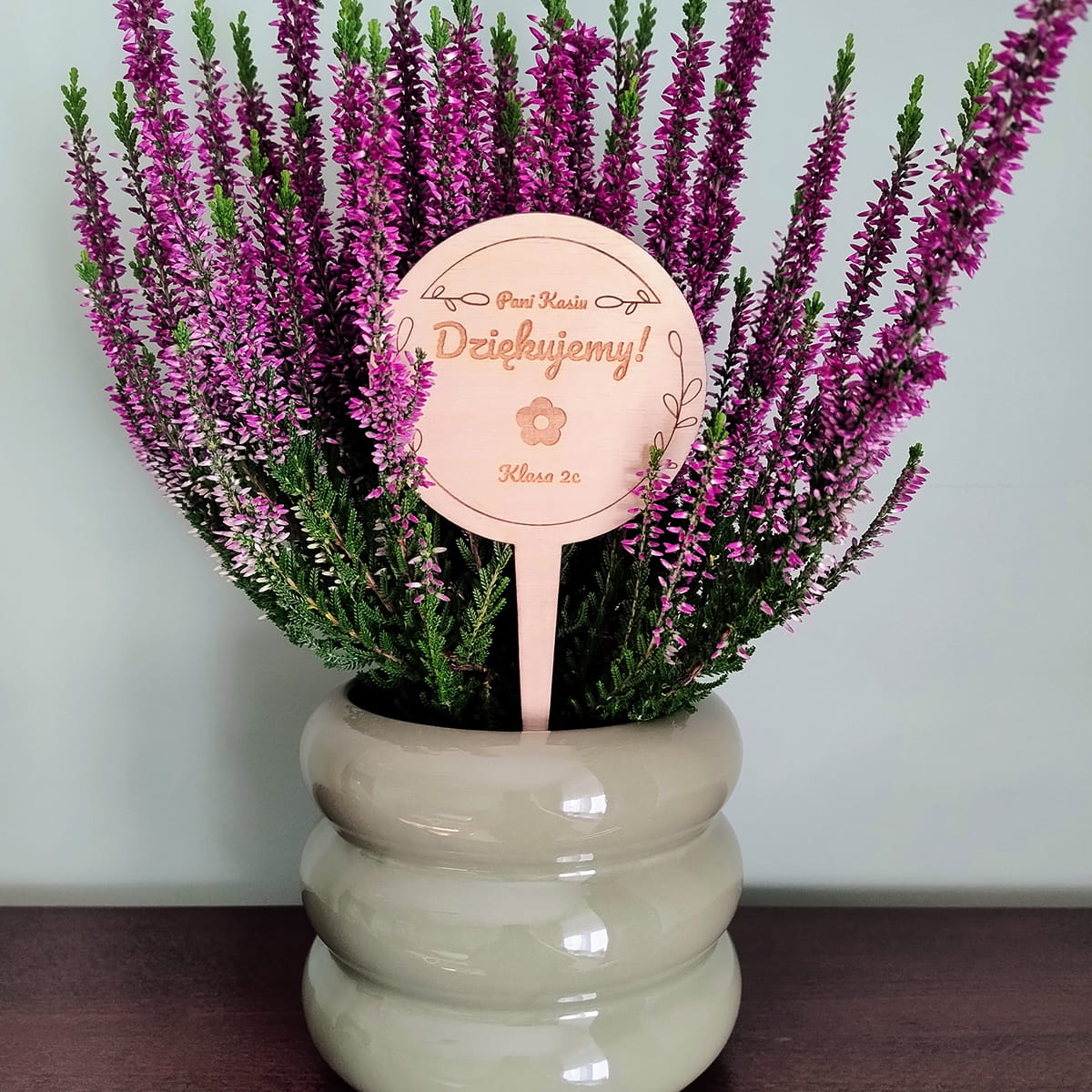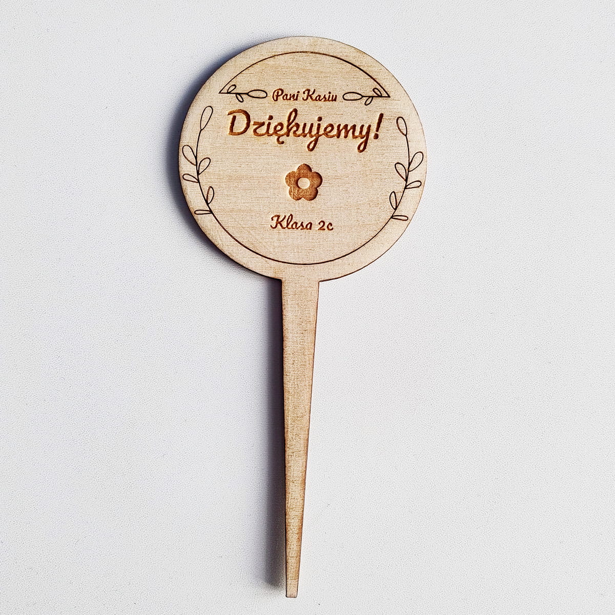 Topper z dedykacją, może być użyty np.: do kwiatów doniczkowych, bukietów.