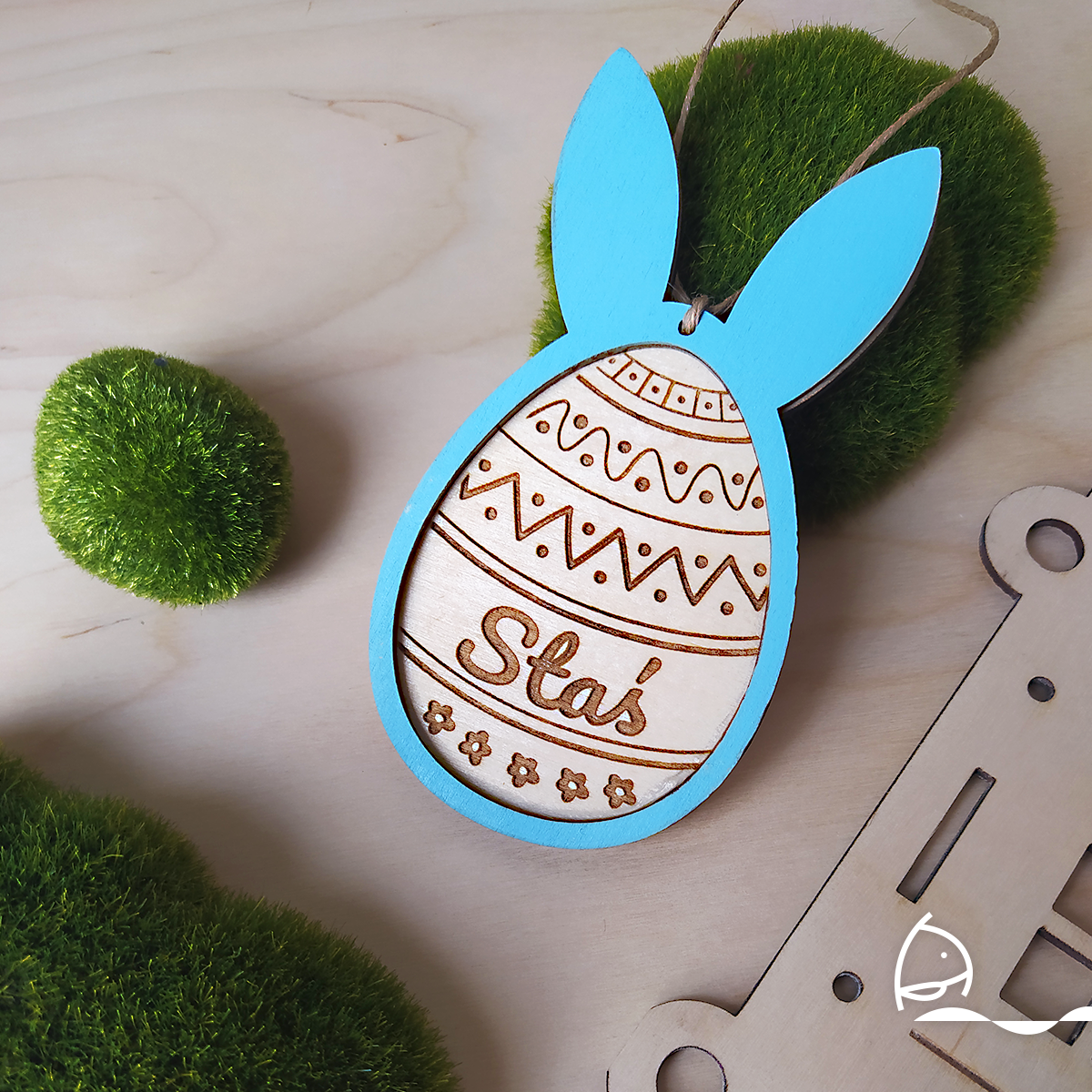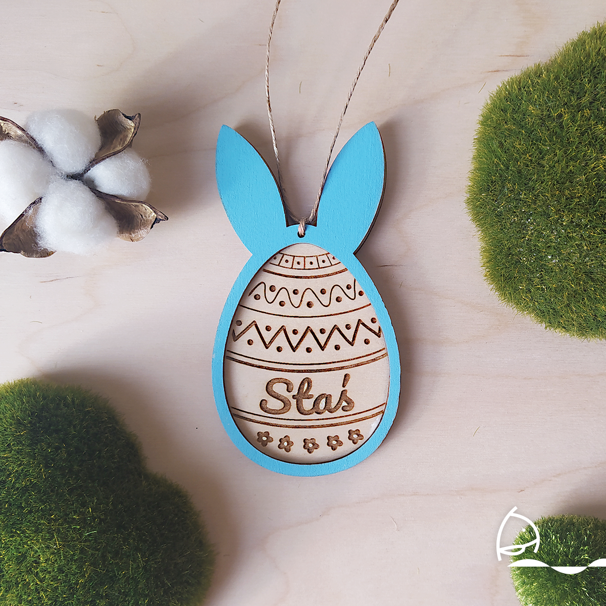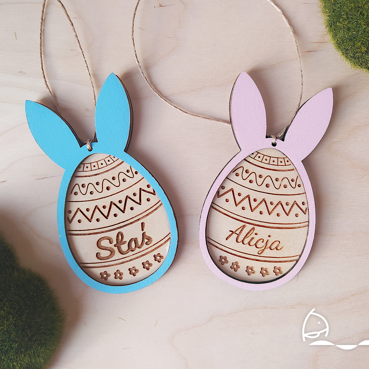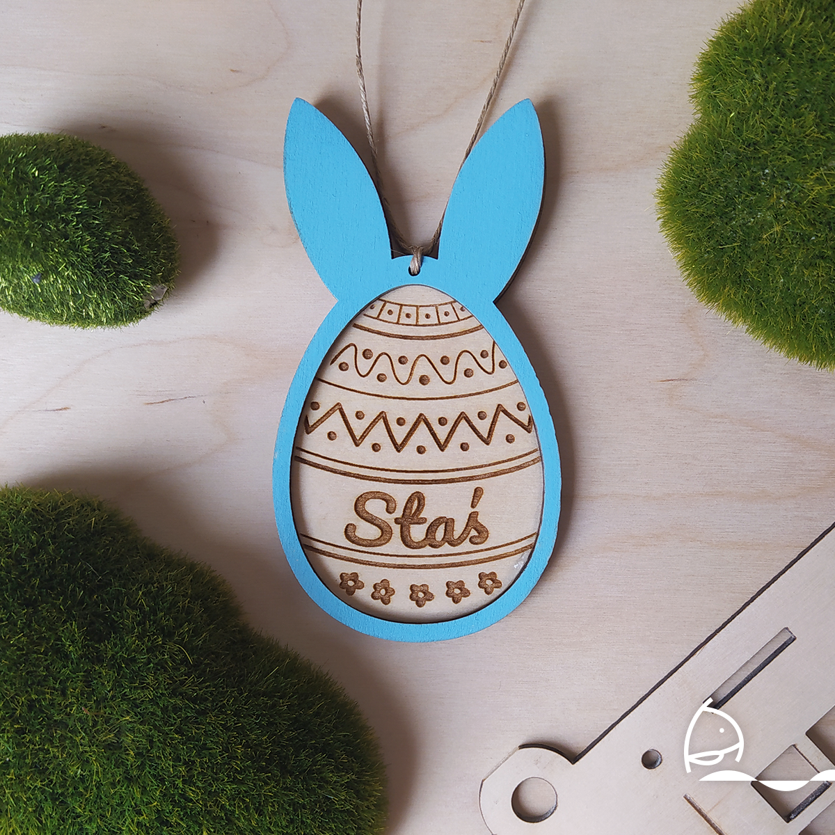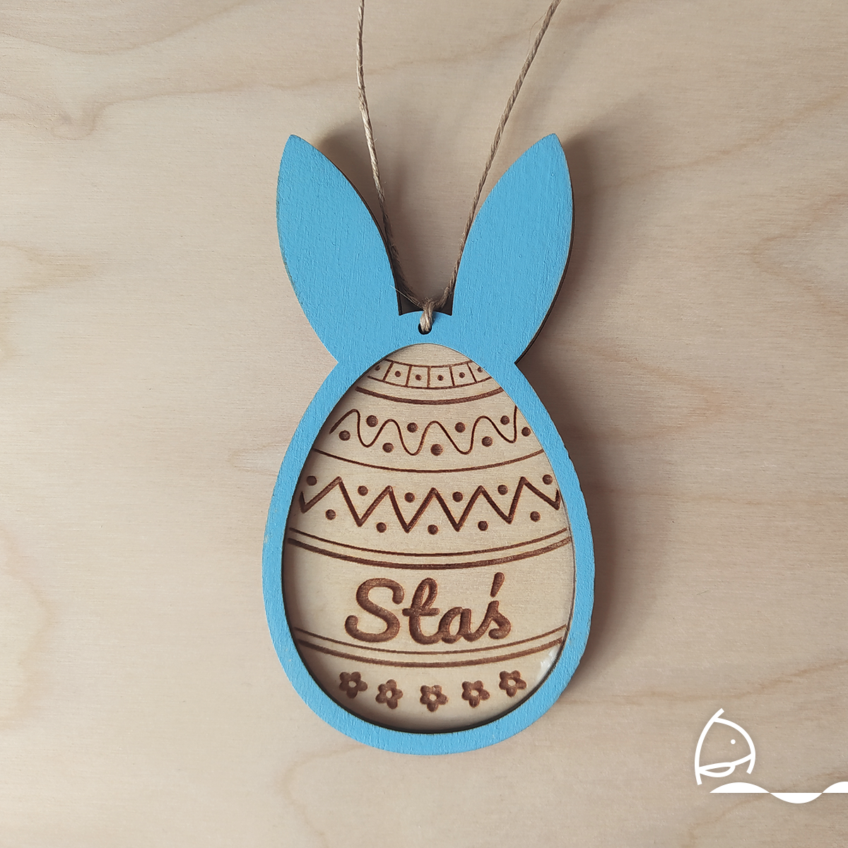 Wielkanocna zawieszka z imieniem może służyć jako dekoracja koszyczka albo świąteczna ozdoba domu. Personalizowana ozdoba będzie świetnym upominkiem.